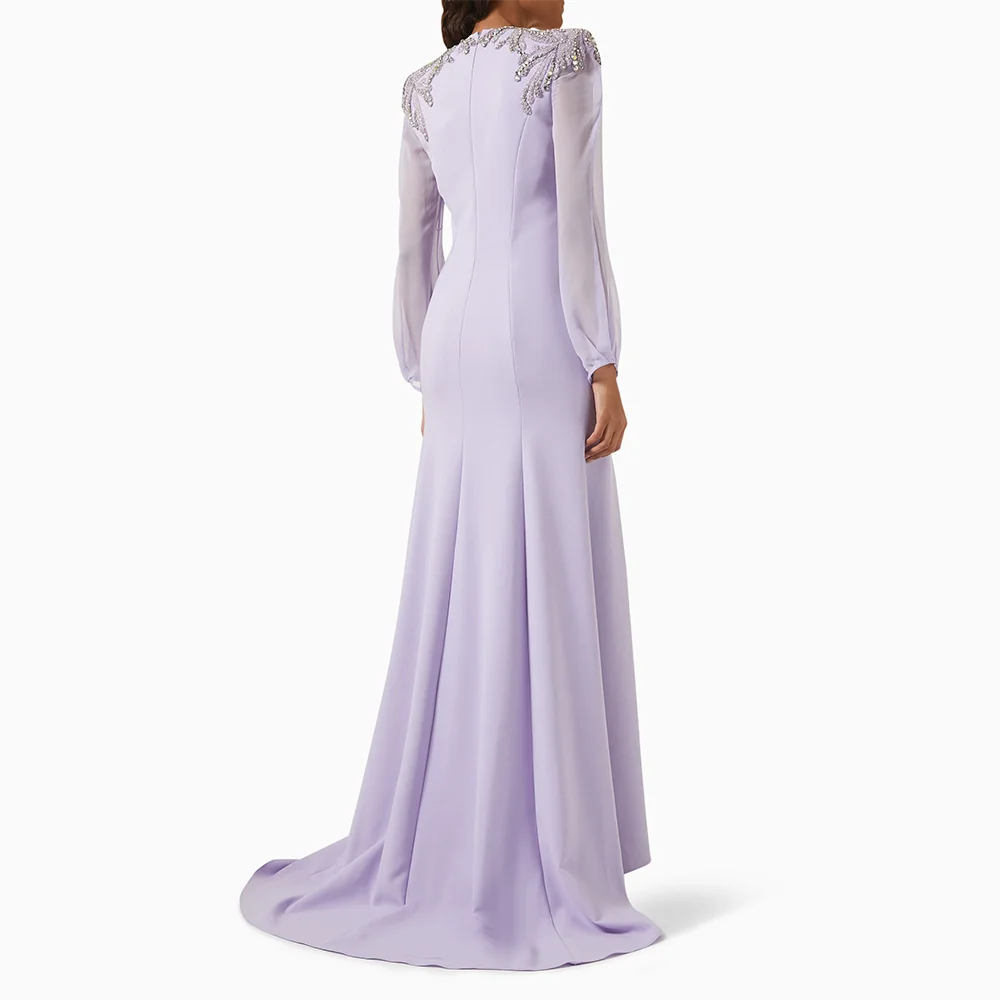Customized Elegant Long Sleeves Evening Dress Beadings Crystals Mermaid Prom Dresses Floor Length Party Dresses for Special