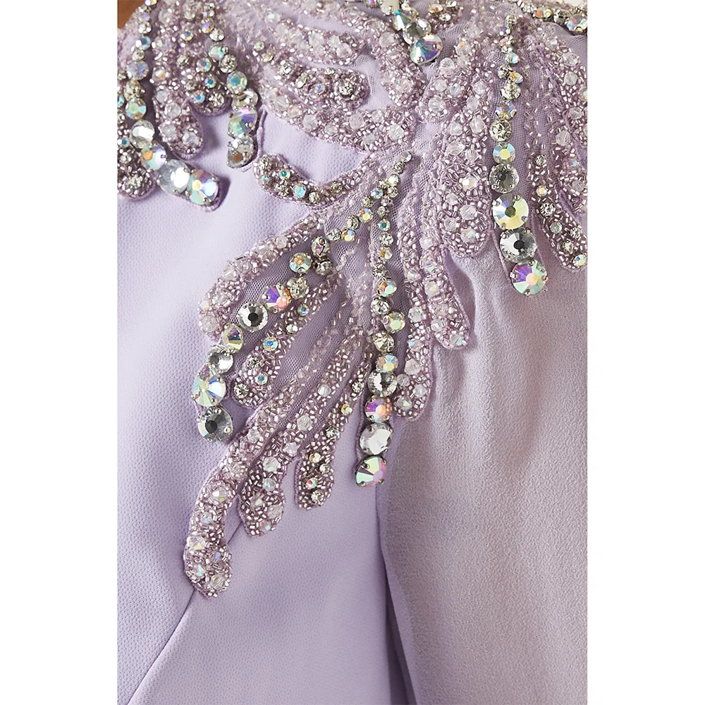 Customized Elegant Long Sleeves Evening Dress Beadings Crystals Mermaid Prom Dresses Floor Length Party Dresses for Special