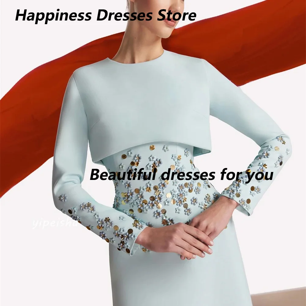 Customized O Neck Long Sleeves Graduation Prom Dress Sequined Beading A Line Evening Dress Ladies Elegant Formal Party Dresses